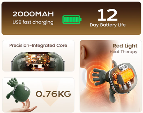4. Deep Acupressure and Kneading Stimulates multiple neck acupoints with three-dimensional muscle kneading.
